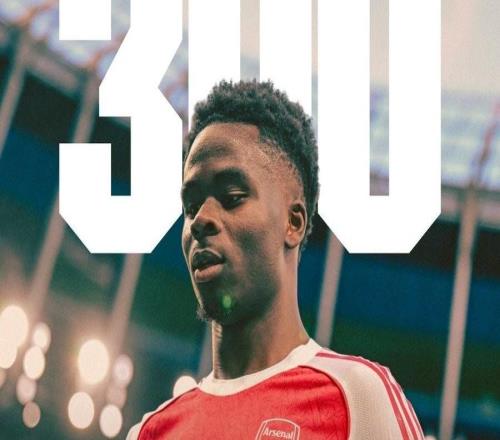 作为队长首发出战,萨卡迎来阿森纳一队生涯第300场里程碑