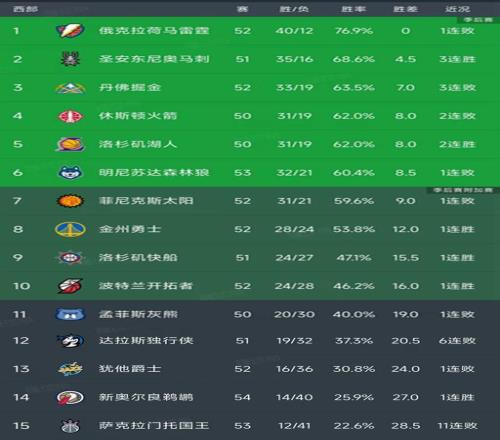 ±±¾©Ê±¼ä2ÔÂ7ÈÕ£¬Ëæ×ſ촬114-111Ë͹úÍõ11Á¬°Ü£¬¿ªÍØÕß135-115´óʤ»ÒÐÜ£¬½ñÈÕµÄNBAͨÀýÈü½áÊøÁËËùÓнÇÖð£¬ÎÒÃÇ¿´¿´Î÷²¿×îлý·Ö°ñ±ä»»£¡
