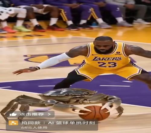 这边,一脸稚气的幼童娴熟拍着篮球,竟将NBA超等球星“勒布朗·詹姆斯”给晃倒;那边,詹姆斯又被一辆宛如活物的电动车“打爆”,这辆电动车轻松过掉他后将球送进篮筐;甚至另有人利用AI技术,让螃蟹运球和詹姆斯单挑……近日,极目新闻记者注意到,某短视频平台掀起一股AI篮球单挑詹姆斯的风潮,众多网友通过AI技术制作视频,不少网友挖苦:“詹姆斯在短视频里被打爆了。”