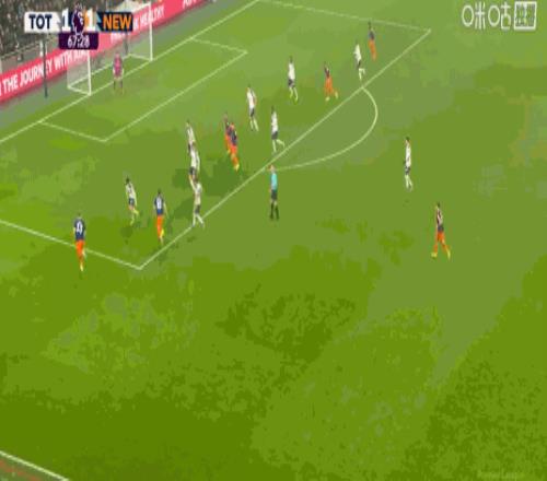 第45+5分钟,突破僵局,佳夫门前补射得分,纽卡1-0