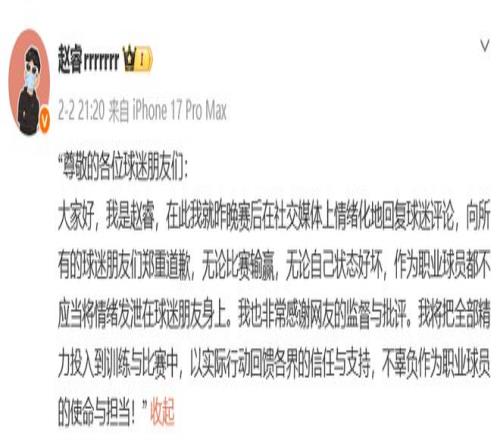 2ÔÂ11ÈÕ£¬CBA¹Ù·½Ðû²¼Í¨¸æ£¬ÕÔî£ÔÚÉ罻ýÌåÆ½Ì¨Ðû²¼ÑÏÖØ²»µ±ÑÔÂÛ£¬¸øÁªÈüÔì³É²»Á¼Ó°Ïì¡£¶ÔÕÔ¦ÒÔÍ£Èü3³¡¡¢·£¿îÈËÃñ±Ò5ÍòÔªµÄ´¦·Ö£¬Í¬Ê±£¬¶Ô±±¾©Ê׸ִ¦ÒԺ˼õÁªÈü¾·Ñ5ÍòÔªµÄ´¦·Ö¡£