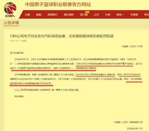 2026Äê2ÔÂ11ÈÕ£¬CBA¹«Ë¾µÄÒ»Ö½·£µ¥£¬½«Õý´¦ÓÚ¹ú¼Ò¶Ó¼¯ÑµÆÚµÄ±±¾©Ê׸ÖÇòÔ±ÕÔî£ÍÆÖÁÓßÂ۵ķç¿ÚÀ˼⣬Õë¶ÔÕÔËǰÔÚ...