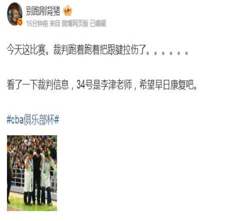 ÔÚCBA¾ãÀÖ²¿±¼¾¾üÈü½øÐе½µÚ¶þ½Ú½ÇÖðÀú³ÌÖУ¬34ºÅ²ÃÅÐÀî½òͻȻÔÚÅܶ¯Ê±ÒâÍâÊÜÉË£¬ºÜ¿ÉÄÜÊÇ·ºÆðá˽ŻòÕßÀÉËÖ®ÀàµÄÉËÊÆ£¬µ¼ÖÂËûÎÞ·¨¼ÌÐø´µ·£¸Ã³¡½ÇÖð¡£