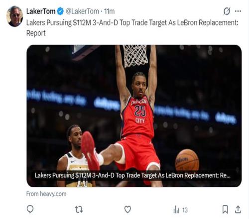 ±±¾©Ê±¼ä2ÔÂ14ÈÕÍí£¬ºþýLaker TomҲ͸¶£¬ÔÚ2026ÄêÐÝÈüÆÚºþÈ˶ÓÓÐÒý½øÈýÄê1.12ÒÚÌõÔ¼µÄÄ«·ÆµÄ¼Æ»®¡£