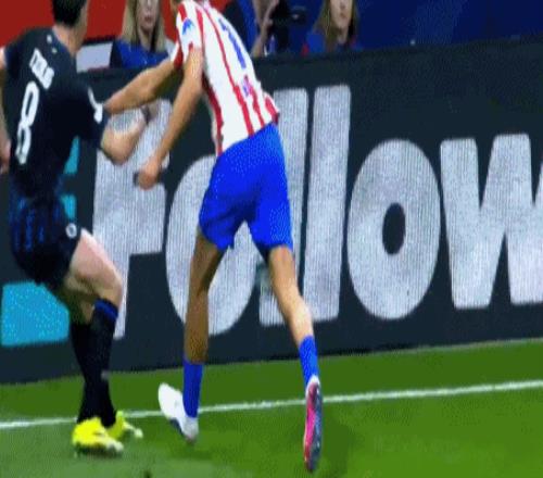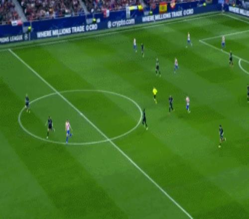 第23分钟,奥布拉克大脚长传,索尔洛特扛着梅切勒,禁区内起脚抽射,米尼奥莱泛起失误,皮球钻入网窝,马竞突破僵局,1-0!