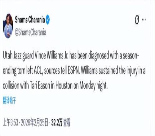 ±±¾©Ê±¼ä2ÔÂ25ÈÕ£¬¾ÝÃû¼ÇShams±¨µÀ£¬ÔÚ½ÓÊܽøÒ»²½¼ì²éºó£¬¾ôÊ¿ÇòԱСÎÄ˹-ÍþÁ®Ä·Ë¹È·ÕïΪ×óϥǰ½»²æÈÍ´ø£¨ACL£©ËºÁÑ¡£ÕâÒ»ÉËÊÆ²»µ«ÈÃÍþÁ®Ä·Ë¹Ö±½Ó±¨Ïú2025?26Èü¼¾£¬Æ¾¾ÝÕâÀàÉ˲¡µÄͨÀý»Ö¸´ÖÜÆÚ£¬Ëû2026?27Èü¼¾µÄ´ó²¿·Öʱ¼äÒ²ºÜ¿ÉÄÜÎÞ·¨³öÕ½¡£
