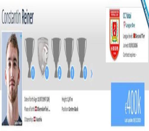 2025赛季结束后,赖纳与陕西联合条约到期离队,成为自由球员。现在他在德转上的身价为40万欧元。
