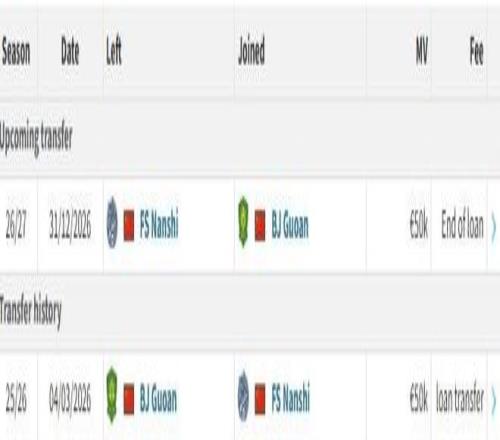 北京时间3月4日,德转更新,北京国安19岁中场李睿跃租借加盟佛山南狮。