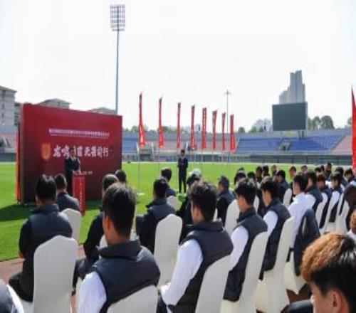仪式现场,鲜红的队旗熠熠生辉,承载着重庆足球的荣耀与期盼,更凝聚着市区两级部分对足球事业的深切眷注。重庆市体育局副局长杜学勇莅临仪式,为队长向余望授予出征队旗,这是使命的通报,也是责任的传承,向余望和重庆铜梁龙队全体成员,将在中超赛场上勇猛拼搏、勇毅前行,充分展现重庆足球的精神风貌与责任继续。