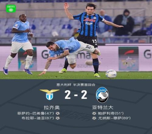 北京时间3月5日意大利杯 半决赛首回合,拉齐奥对阵亚特兰大。角逐中丹尼尔-马尔蒂尼率先助攻菲萨约-巴希鲁挑射完成破门,随后帕萨利奇禁区跟进补射破门将比分扳平,之后帕萨利奇停球泛起失误,布拉耶-迪亚破门资助球队再度领先,苏莱曼纳送出助攻,尤纳斯-穆萨破门绝平比分。全场战罢,最终比分拉齐奥 2-2 亚特兰大。