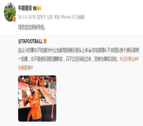 《泰山晚报》记者牛志明透露,山东泰山队新赛季球员定妆照将在3月8日拍摄。