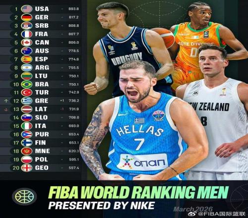 北京时间3月6日,2027年男篮世界杯预选赛第二期结束后,FIBA官方宣布了最新一期男篮世界排名,中国男篮的排名上升1位,来到世界第26名。