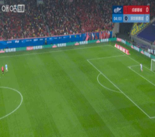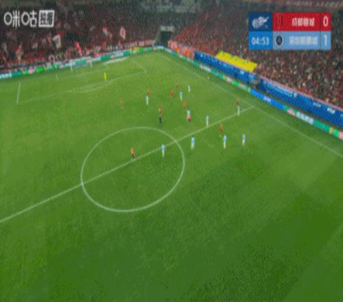 新鹏城后场一脚长传给到前场中路!阿代米把球拿到,蓉城两名后卫跑到一起,阿代米1V2打门得分!