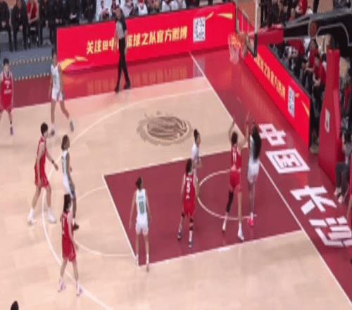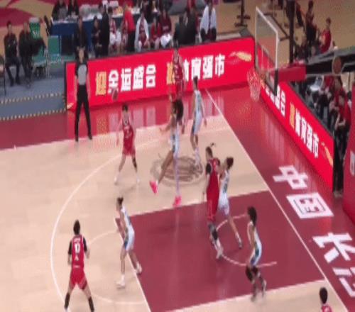 杨舒予攻击篮下助攻给到刘禹彤,后者强打篮下拿分。