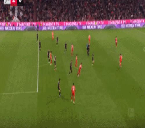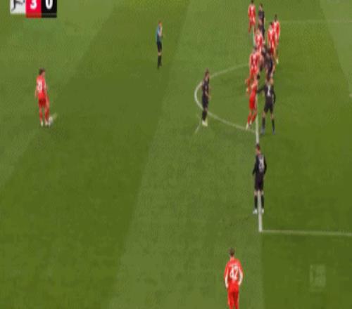 第57分钟,红点套餐,雅克松造点,穆西亚拉破门,拜仁3-0门兴