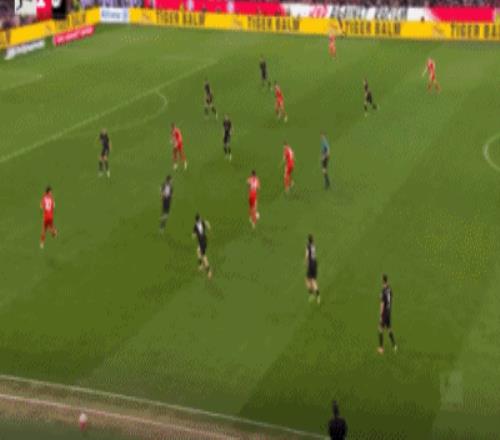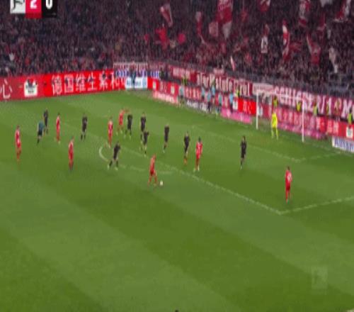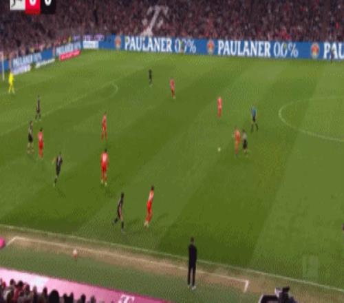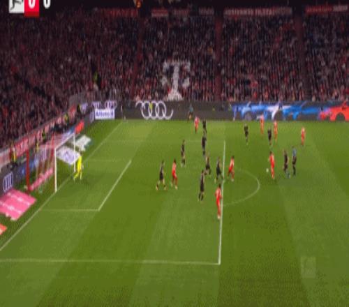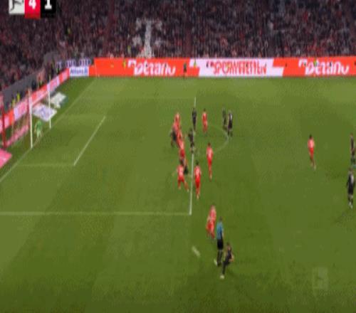第32分钟,格雷茨卡挑传,迪亚斯凌空抽射破门,拜仁1-0门兴